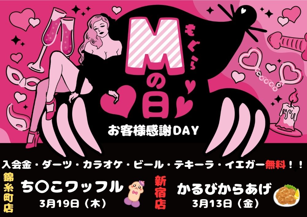 【ノンハプバーもぐら錦糸町】3/19(木)Mの日 Mって何のM?