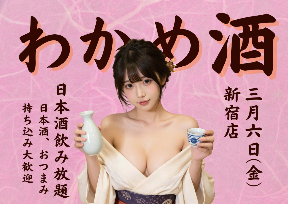 【ノンハプバーもぐら新宿店】3/6(金)わかめ酒 タイトルにドキッとしたあなた、正解です。